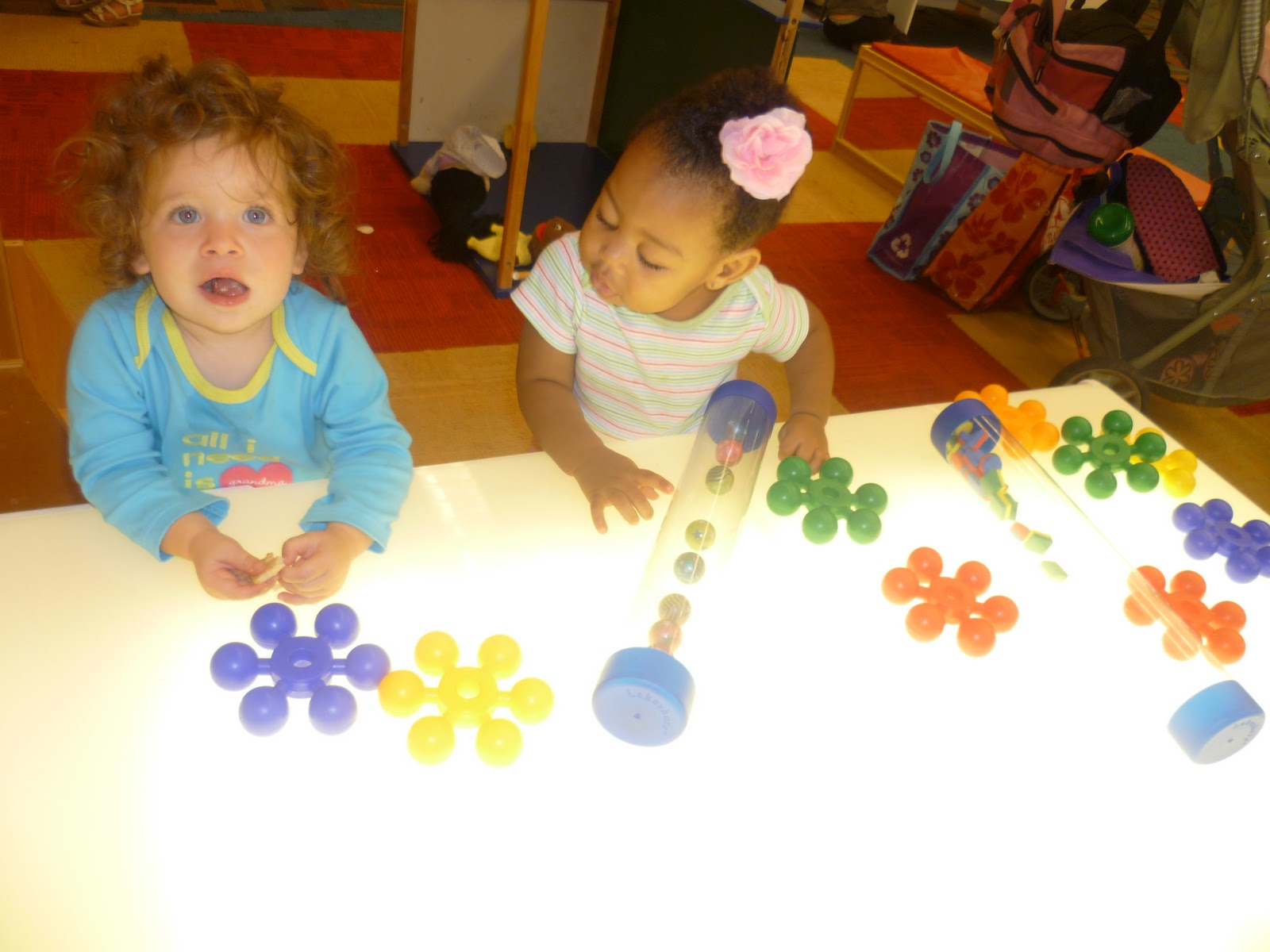 Ce Ce loves the light table at the library and is very social with her little friends.